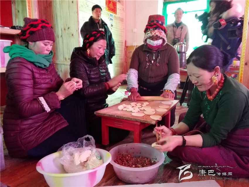 走進(jìn)江巴達(dá)吉的家里,一股熱浪撲面而來,小鋼爐上燒著熱水,幾個(gè)女人正在備料準(zhǔn)備包酥油包子和牛肉餃子。藏桌上擺滿了糖果、牛肉,豐盛的食物琳瑯滿目。江巴達(dá)吉愜意地喝著奶子茶,知足和幸福寫在臉上。