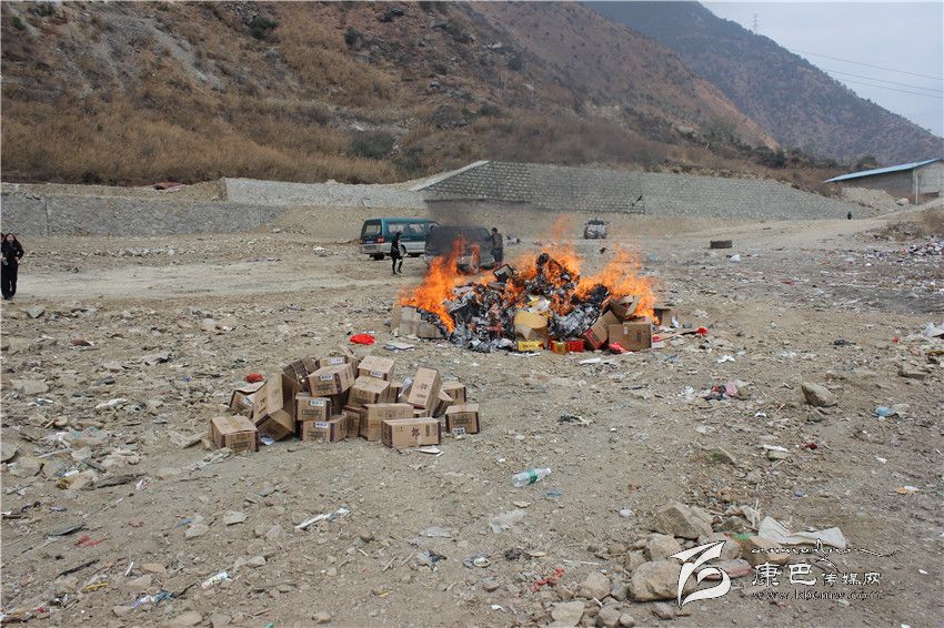 本網(wǎng)訊(謝靜 尼胡克布文/圖)3月15日,瀘定縣食品藥品工商質(zhì)量監(jiān)督管理局聯(lián)合司法局、發(fā)改局、農(nóng)牧局等相關(guān)部門以及煙草、桑吉卓瑪、瀘灃超市、電信等企業(yè),以“3.15”活動為契機(jī),深入開展“新消費(fèi),我做主”年主題宣傳活動,現(xiàn)場接待了各類咨詢150余人(次),發(fā)放各種宣傳材料2000余份。宣傳活動結(jié)束后,縣食品藥品工商質(zhì)量監(jiān)督管理局將近期收繳的價(jià)值9.1余萬元的不合格食品、侵犯商標(biāo)的商品,運(yùn)送到垃圾場進(jìn)行了焚毀。圖為焚燒現(xiàn)場。