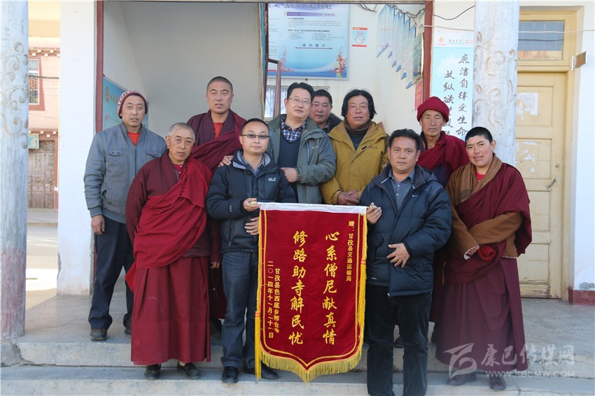 受益僧尼送錦旗。