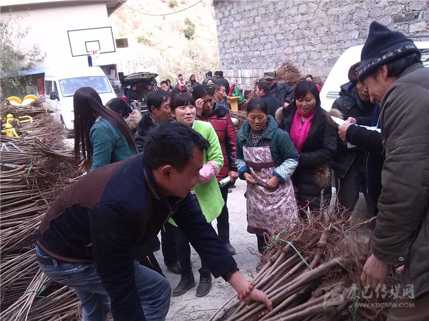 村民踴躍領(lǐng)取大櫻桃樹(shù)苗。