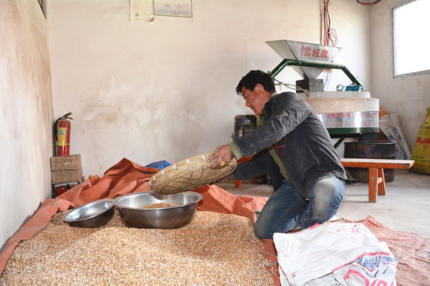 事實(shí)上,小作坊的準(zhǔn)確名稱是仁果下村電磨坊合作社,屬于村里的集體經(jīng)濟(jì),廠房的建設(shè)、機(jī)器的購(gòu)買都來源于扶貧專項(xiàng)資金。建成后,合作社提供崗位,讓村里的貧困戶來操作運(yùn)營(yíng)。于是,洛桑降措成為了這里的“主人”。