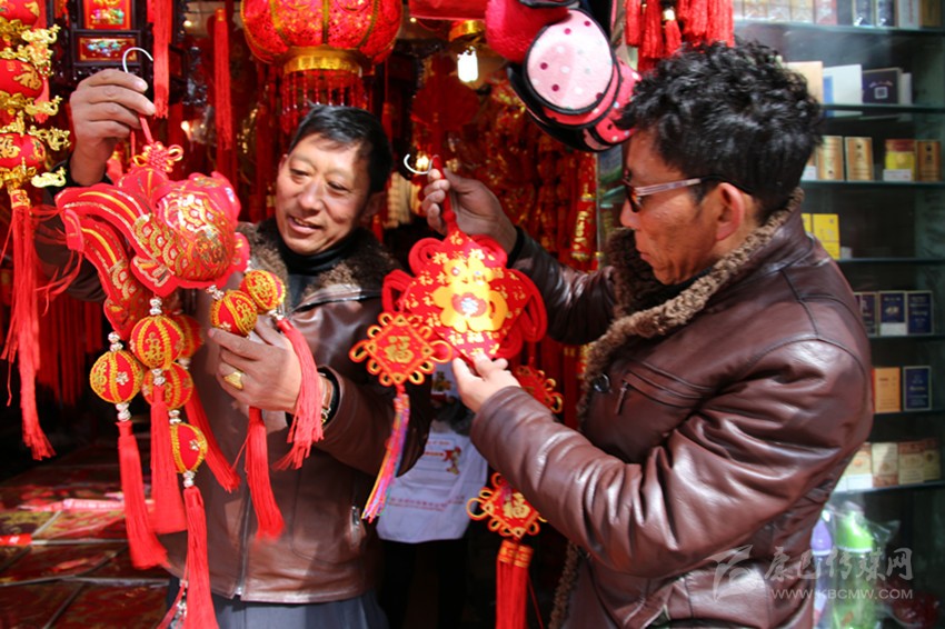 洛讓邊說邊看著單子,“啊”了一聲,說:“差點忘了老婆大人交代的大事?!痹瓉?,臨走時,洛讓老婆特意叮囑他要買春聯(lián)、中國結(jié)和燈籠。好在側(cè)旁的郭達橋內(nèi)江小百貨店就有賣,買好之后,洛讓又特意挑選了一個金線編織的魚掛飾,“這個好,這個好,年年有余?!睗M臉充滿憧憬。