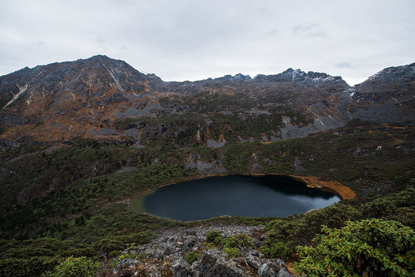 伍須海湖面1.2平方公里,湖水最深處30余米。伍須海被當?shù)厝擞鳛椤跋膳釆y的明鏡”。原始森林和寬闊的草甸環(huán)繞湖泊,湖水碧綠透明,環(huán)境幽靜。從夏到秋周圍百花盛開,爭奇斗艷。古樹盤根錯節(jié)、藤枝攀沿纏繞,杜鵑樹伸向湖面,使伍須顯得原始、古樸,置身其間,仿佛進入仙境。