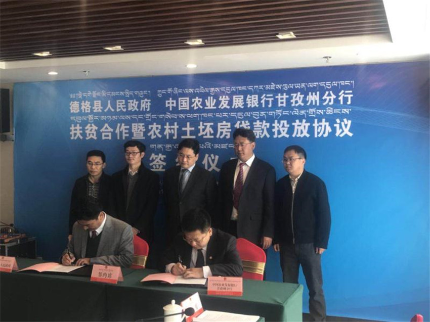 德格縣人民政府與中國農業(yè)發(fā)展銀行甘孜州分行簽約扶貧合作暨農村土坯房貸款投放協(xié)議