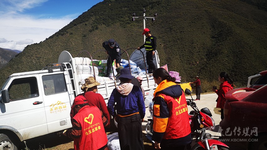 白玉縣安置點正在發(fā)放救災(zāi)物資。