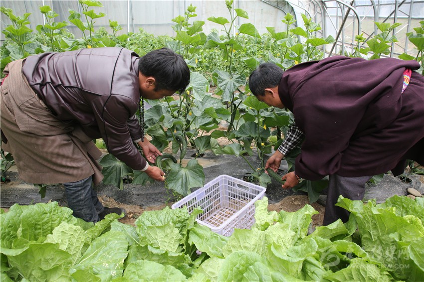 理塘極地農(nóng)莊的工人們正在采摘黃瓜。本網(wǎng)資料庫圖