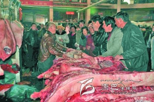 肉食品市場(chǎng)顧客盈門(mén)。