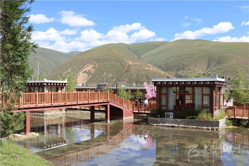走進山莊,一排排仿道孚民居外觀的房子整齊排列掩映在柳樹間,四面落地玻璃窗的設計讓陽光溫暖整個房間,潺潺的小溪縈繞其間,不遠處蒼措嘎布海子的蘆葦叢在微風中輕輕擺動,幾只野鴨子在水上嬉戲,特色民居增加了民族韻味,漫步木制棧道,眼前呈現(xiàn)出美麗鄉(xiāng)村的畫卷。