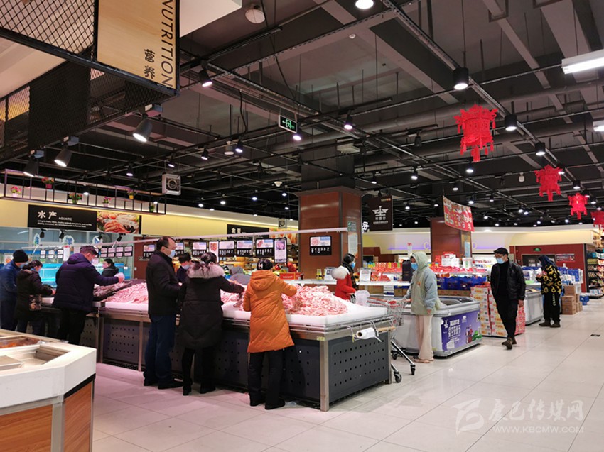 在二樓的豬肉供應攤點,康定冷鏈凍制品有限責任公司積極響應政府的號召,為了讓市民能夠買到放心的新鮮豬肉,1月30日,該公司門店冷鏈生鮮肉業(yè)共計屠宰了4頭生豬,該公司職員告訴記者,疫情期間,豬源供應緊張,并且要經(jīng)過層層檢疫才能進入市場,但是公司仍然積極尋找豬源,保證疫情期間的豬肉供應,所以即便是到了下午仍能買到新鮮豬肉。
