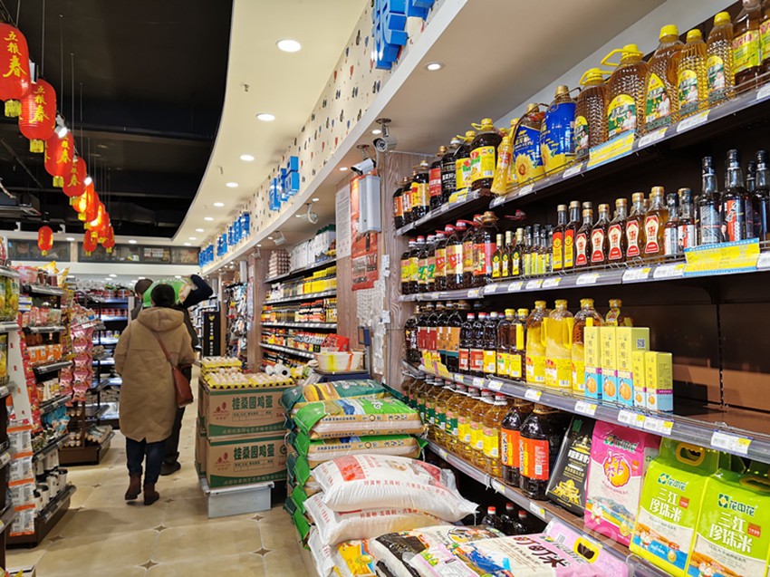 記者走訪多家民貿(mào)公司門店看到,糧油、調(diào)味品等擺滿了多個貨架,洗手液等也沒有出現(xiàn)斷貨現(xiàn)象,市場井然有序。