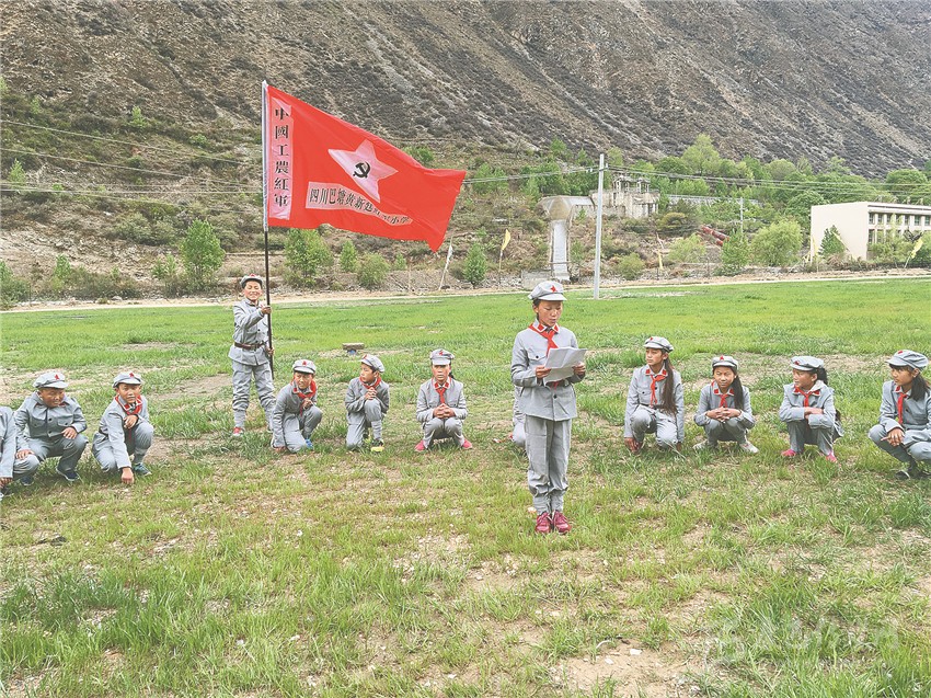 在巴塘,紅色教育是各個學(xué)校的“必修課”。巴塘金弦子小學(xué)少年軍校是巴塘縣第一所少年軍校。鮮明特色、多彩活動、創(chuàng)新教育,渲染出絢麗“紅色”。學(xué)校教務(wù)副主任陳雪秋告訴筆者,革命傳統(tǒng)不能忘,紅色精神代代傳,少年軍校是接力站,把革命火炬接續(xù)傳遞;是大熔爐,讓小小少年錘煉意志、升華靈魂,讓紅色的旗幟高高飄揚(yáng)。
