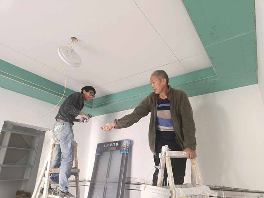 村民王福玉的房子也是一套175平方米的大房間。室內(nèi)堆滿了砂石,工人們正在抓緊裝修?!拔掖蛩阌靡粋€月的時間完成裝修,準備在春節(jié)前搬新家?!蓖醺S裥判臐M滿地說,“我和老公都會泥水匠,今年我們就在安置點建設工地務工,每天的工資有320元,目前收入合計有十五六萬元。”