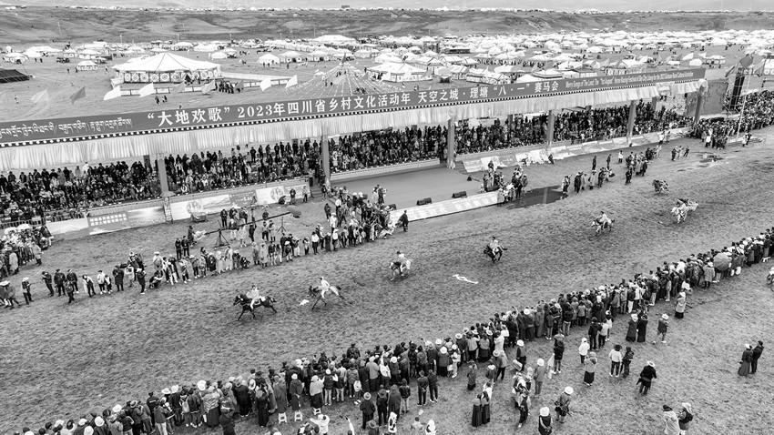 “中國藏族賽馬文化之鄉(xiāng)”“理塘八一傳統(tǒng)賽馬會”是四川涉藏州縣規(guī)模最大的賽馬會,賽馬傳統(tǒng)延續(xù)長達400余年?!霸缇吐犝f過馬背上的理塘,今天終于親眼所見,實在不虛此行。草原追風(fēng),策馬飛奔,蹄聲如雷,震徹山野,這是多么壯美的理塘萬馬奔騰圖啊!多想遠(yuǎn)離城市的喧囂,策馬揚鞭,馳騁草原,豪邁瀟灑,勇往直前。以后每一年的理塘賽馬活動,我一定會帶上家人再來這里,因為理塘,可謂是心靈棲息的地方。”在“大地歡歌”2023年四川省鄉(xiāng)村文化活動年——天空之城·理塘“八·一”賽馬會上,來自北京的游客石磊被當(dāng)?shù)刭愸R文化吸引,和朋友玩得不亦樂乎。