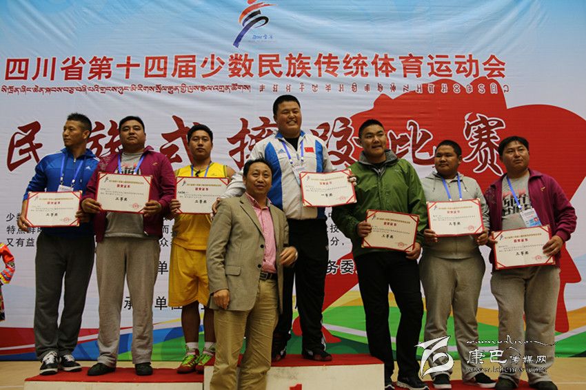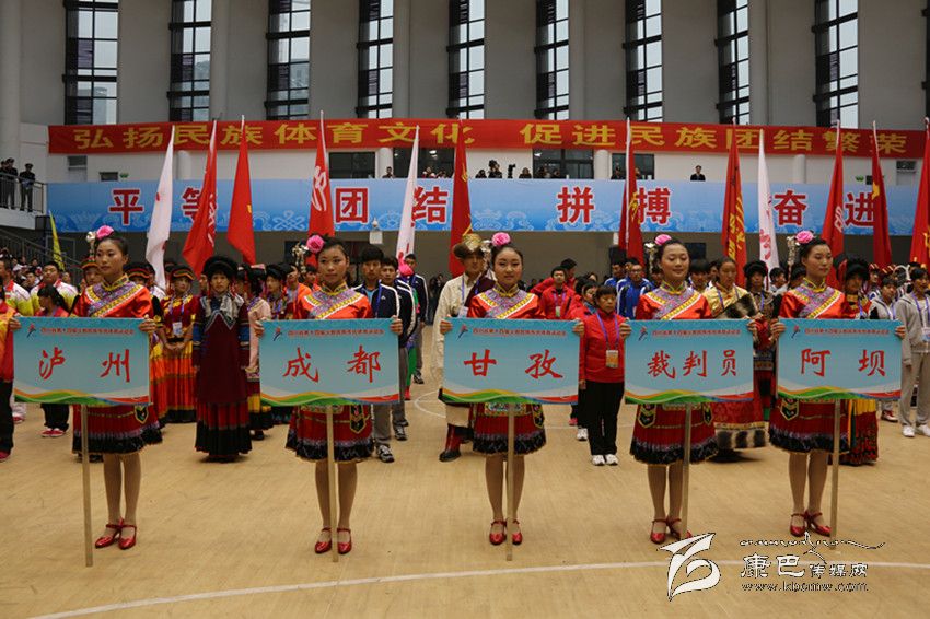 2014年11月4日—9日,四川省第十四屆少數(shù)民族傳統(tǒng)體育運(yùn)動會在宜賓市隆重舉行。在此次民運(yùn)會上,由138人組成的甘孜州代表團(tuán)代表112萬父老鄉(xiāng)親參加了本屆民運(yùn)會射弩、民族式摔跤(格、北嘎、且里西、絆跤)、蹴球、押加、珍珠球、高腳競速、板鞋競速、陀螺、苗族手毽等9個(gè)競賽項(xiàng)目和競技類、技巧類、綜合類3個(gè)表演項(xiàng)目的比賽。