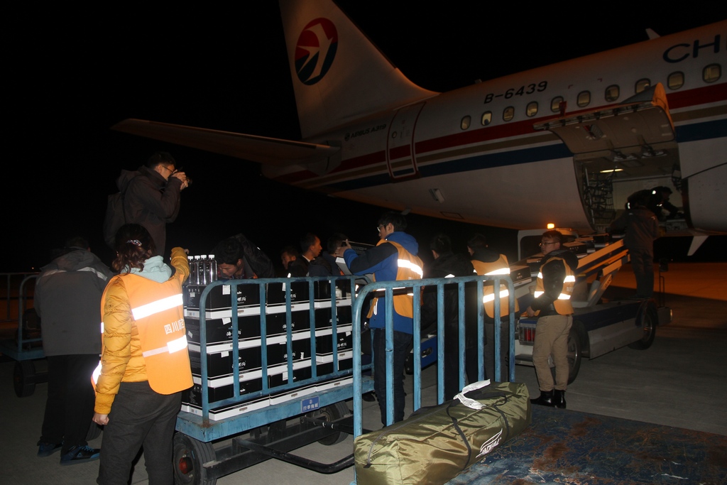 為了盡快給災(zāi)區(qū)人民送去切實需要的救援物資,解決他們的臨時住所和安全飲水等問題,同時也是安撫災(zāi)區(qū)人民的情緒。四川康定機場集團(tuán)公司董事長譚亨帶領(lǐng)機場救援工作組在23日6點28分航班抵達(dá)后,以最快速度裝載好所有物資,全速趕往震中塔公鄉(xiāng)。