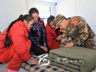 12月7日,康定6.3級(jí)地震后的第二個(gè)周末,這對(duì)甘孜州西康福利學(xué)校的孩子們來說,是一個(gè)開心的日子。當(dāng)天上午,武警甘孜州支隊(duì)抗震救災(zāi)一線官兵來到學(xué)校,與在這里生活學(xué)習(xí)的孤兒和特困生一起包餃子,度過了一個(gè)溫暖的周末。12歲的措姆性格靦腆,她把餃子皮攤在手心,一旁的戰(zhàn)士王兵舀了一勺餡放在餃子皮中央,可措姆怎么也沒法把餃子包得像模像樣。在王兵的輔導(dǎo)下,措姆很快學(xué)會(huì)包了一個(gè)漂亮的餃子。在學(xué)包餃子過程中,五六十雙手就包出五六十種餃子,看著自己的勞動(dòng)成果,孩子們特別開心。吃過午飯,武警官兵們還精心安排了疊被子活動(dòng),在帳篷內(nèi)教孩子們?cè)趺疮B軍被。大家一起動(dòng)手,你教我疊,熱鬧極了。(宋科霖 /文 郝勇 /攝)