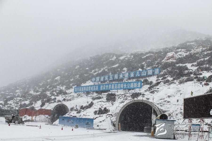 由于冬季天氣寒冷,雀兒山隧道口被白雪覆蓋。 新華社發(fā)