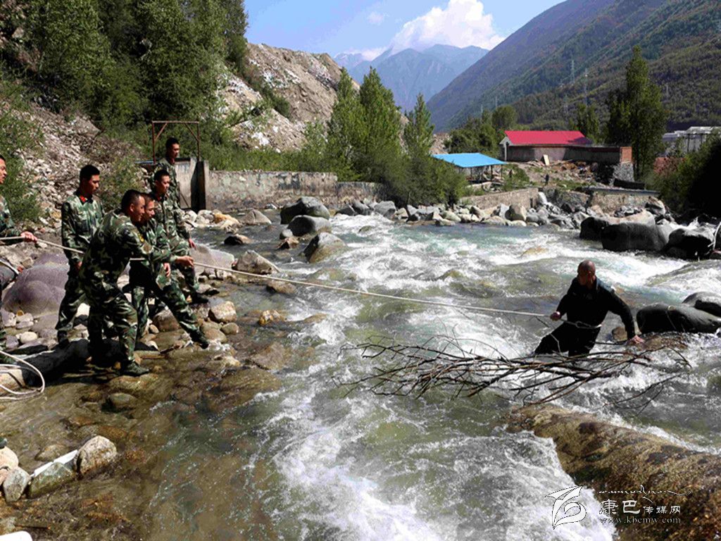 小尚一邊安慰受困男子,一邊用對(duì)講機(jī)向中隊(duì)值班員報(bào)告,請(qǐng)求援助。5分鐘后,中隊(duì)值班員帶領(lǐng)幾名班長(zhǎng)骨干攜帶救援裝備緊急趕至岸邊,展開(kāi)救援。五月的康定正值雨季,河水湍急、冰冷刺骨,加之河床亂石林立,官兵涉河接近受困男子困難。負(fù)責(zé)一線救援的龔財(cái)嵐排長(zhǎng)決定利用河中大石采取短距離定向移動(dòng)的方法,拋出攀登繩,綁在老鄉(xiāng)腰上確保老鄉(xiāng)不被河水沖走。經(jīng)過(guò)近10分鐘緊急營(yíng)救,受困老鄉(xiāng)被成功營(yíng)救上岸。由于老鄉(xiāng)渾身冰涼且手上有傷,救援官兵決定將老鄉(xiāng)攙扶至營(yíng)區(qū),由衛(wèi)生員對(duì)身體進(jìn)行簡(jiǎn)單檢查,并對(duì)其傷口進(jìn)行處理包扎。