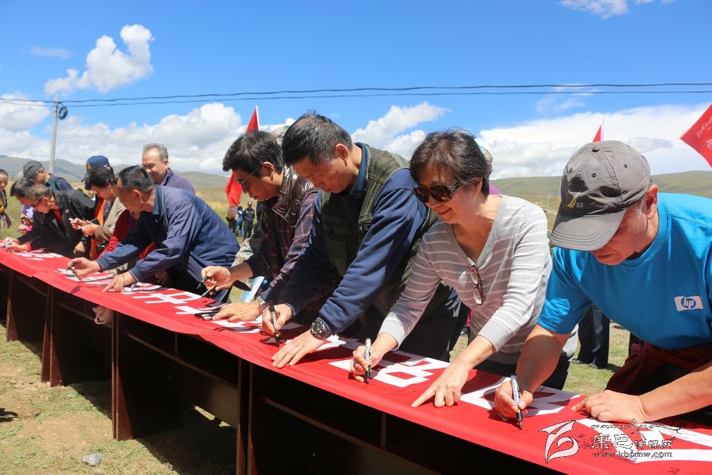 當(dāng)天中午,“甘孜州紀(jì)念紅軍長(zhǎng)征在甘孜80周年暨紅色文化旅游宣傳促銷系列活動(dòng)之紅軍后代重走長(zhǎng)征路活動(dòng)”在該縣十八軍窯洞群遺址隆重舉行,康北民族高級(jí)中學(xué)、斯俄鄉(xiāng)干部、武警官兵、寺廟僧人600人參加了此次活動(dòng)。活動(dòng)中,紅軍后代們認(rèn)真聆聽了講解員介紹十八軍窯洞群鮮為人知、催人奮進(jìn)的歷史故事。他們敬獻(xiàn)花圈、整理挽聯(lián),向在高原上艱苦奮斗、舍身赴義的革命先輩們默哀。隨后,參與活動(dòng)人員在“藏漢一家親”和“紀(jì)念紅軍長(zhǎng)征在甘孜80周年”的巨型橫幅上簽名,并與紅軍后代徒步一公里,其間由學(xué)生、群眾代表、志愿者和紅軍后代互動(dòng)拉歌 。大家用自己的歌聲、自己的行動(dòng),回顧那段歷史,緬懷革命先輩的豐功偉績(jī),感受紅軍先烈們艱苦的生活環(huán)境和艱險(xiǎn)的戰(zhàn)斗歷程。