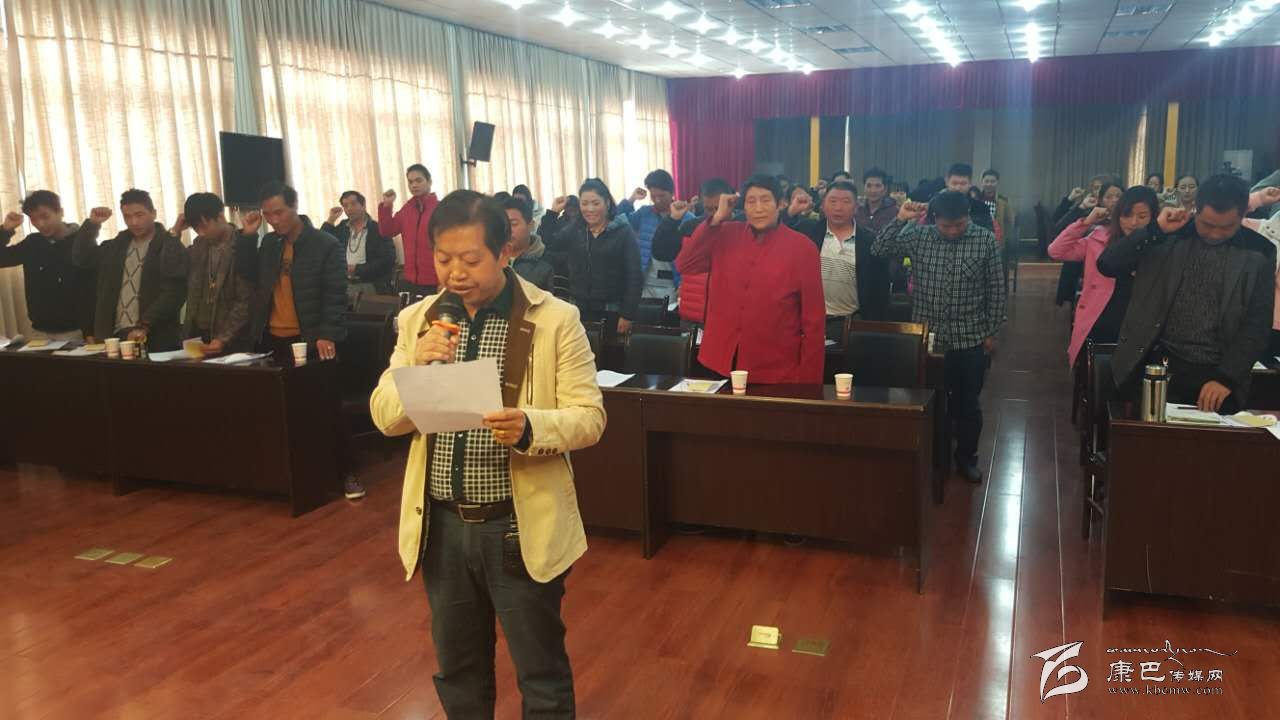 在“海螺溝三天無條件退貨制度集中簽約儀式”上,景區(qū)土特產(chǎn)協(xié)會會長嚴勇帶領全體與會商戶集中宣誓,鄭重承諾:不制假售假,不欺客宰客,不強買強賣,不缺斤短兩,不圍追兜售。