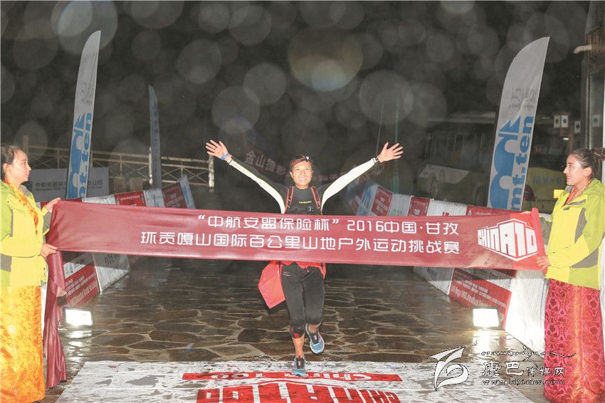 女子組100公里挑戰(zhàn)賽冠軍通過終點。