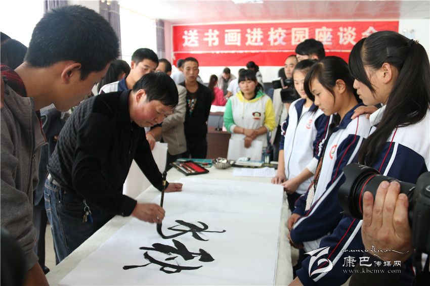 州關(guān)工委領(lǐng)導送書畫進校園。