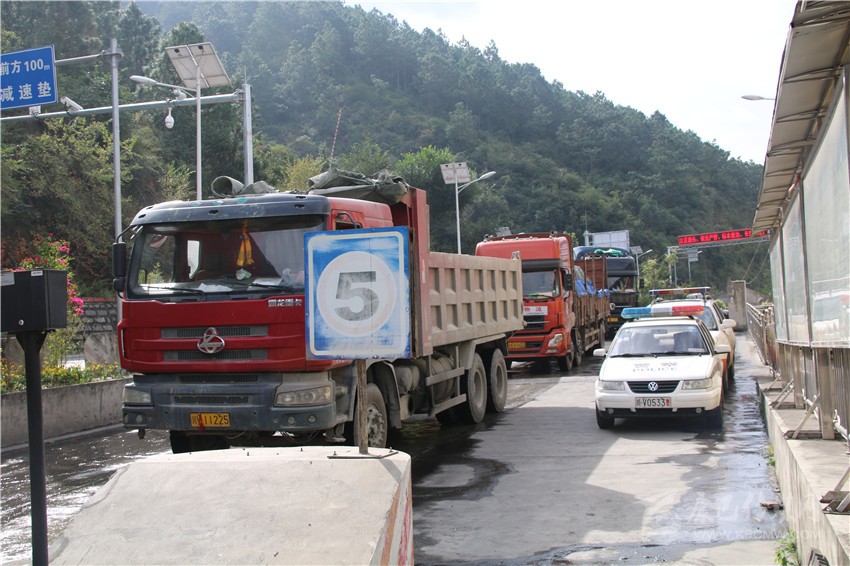 去年10月21日,全國(guó)將執(zhí)行新的貨運(yùn)車裝載標(biāo)準(zhǔn),將降低貨車運(yùn)載量。20日,瀘定檢測(cè)站迎來(lái)了大貨車運(yùn)輸高峰,當(dāng)天通過(guò)瀘定檢測(cè)站的進(jìn)州貨車就高達(dá)953輛,陡然增加的車流量,讓瀘定檢測(cè)站執(zhí)法人員忙得不可開交。凌晨1點(diǎn)左右,因距離檢測(cè)站數(shù)公里外道路正在施工,造成交通大面積擁堵。盡管不在工作職責(zé)范圍內(nèi),瀘定檢測(cè)站除值班人員留守外,交通路政、運(yùn)管、公安交警、特警全員上陣疏導(dǎo)交通?;謴?fù)通行時(shí),已經(jīng)是凌晨3點(diǎn)過(guò)。對(duì)于這樣的“家常便飯”,執(zhí)法人員已經(jīng)司空見(jiàn)慣?!安荒茉跈z測(cè)站周邊造成交通擁堵,這是我們的職責(zé)”。