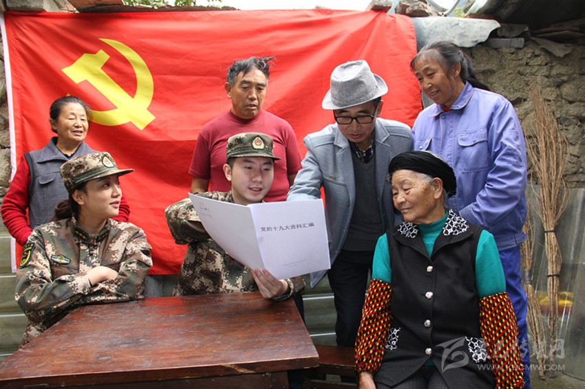 本網(wǎng)訊(劉杰 李華時(shí) 文/圖)為幫助駐地群眾更好的學(xué)習(xí)掌握黨的十九大精神,11月6日,武警四川省總隊(duì)醫(yī)院甘孜衛(wèi)生隊(duì)派出由理論骨干組成的宣傳小分隊(duì),走進(jìn)群眾家里宣講黨的十九大精神,第一時(shí)間把黨的聲音傳達(dá)到基層一線。該醫(yī)院政委李英強(qiáng)表示,部隊(duì)作為黨領(lǐng)導(dǎo)下的武裝力量,有責(zé)任幫助駐地群眾學(xué)習(xí)領(lǐng)會(huì)黨的十九大精神,把黨的最新理論成果傳遞到群眾中。