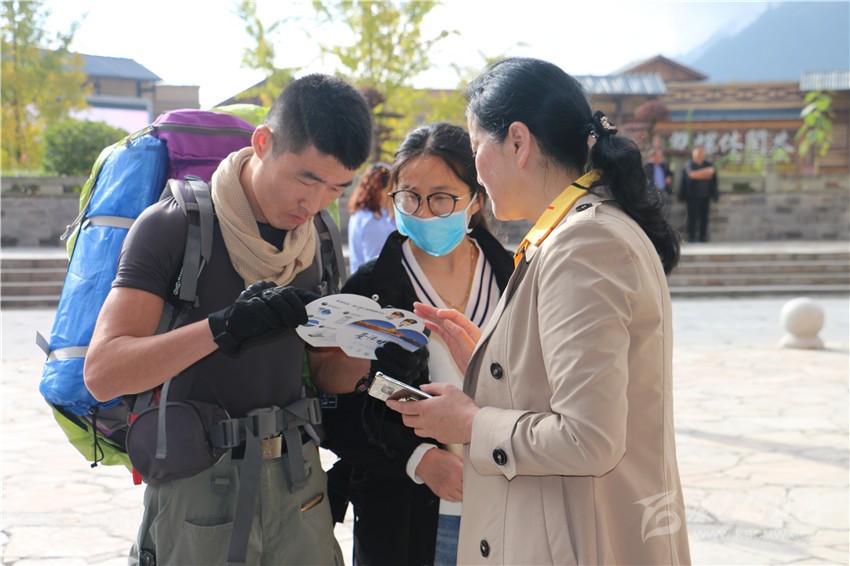 去年國(guó)慶期間,工商局工作人員向來(lái)州游客介紹我州“雙心”創(chuàng)建工作。