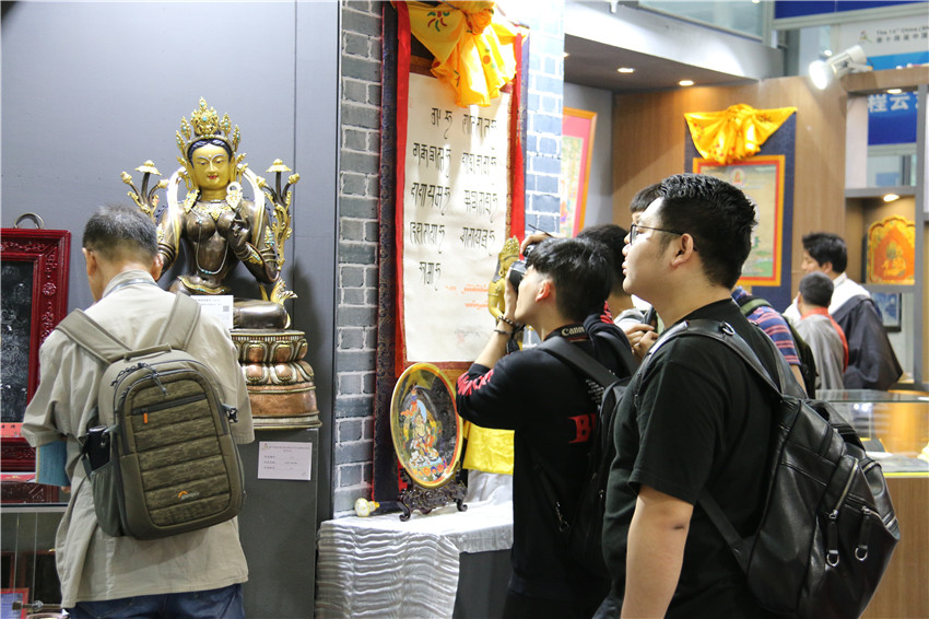 在深圳會(huì)展中心8號(hào)館,我州展區(qū)以傳統(tǒng)的民族文化吸引了眾多游客的駐足。190平方米的展區(qū)內(nèi),百余件展品涵蓋唐卡、藏文書(shū)法、手工藝、文創(chuàng)產(chǎn)品等非遺精品佳作,在花色青銅《綠度母佛像》品牌引領(lǐng)下,突出展示了我州豐富多彩的民族文化資源與非物質(zhì)文化遺產(chǎn)。