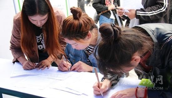 在現(xiàn)場(chǎng),一名手拿“得榮縣人社局”牌子的年輕人引起了記者的注意?!拔沂堑脴s縣人才交流和就業(yè)服務(wù)局的一名工作人員,這次我們縣上有20余人報(bào)名,大都是剛畢業(yè)的學(xué)生,但由于路途遙遠(yuǎn)等原因,今天只來了12人,我是來給他們帶隊(duì)的,希望功夫不負(fù)有心人,他們都能應(yīng)聘到自己心儀的崗位?!边@名叫徐懿的年輕人告訴記者。