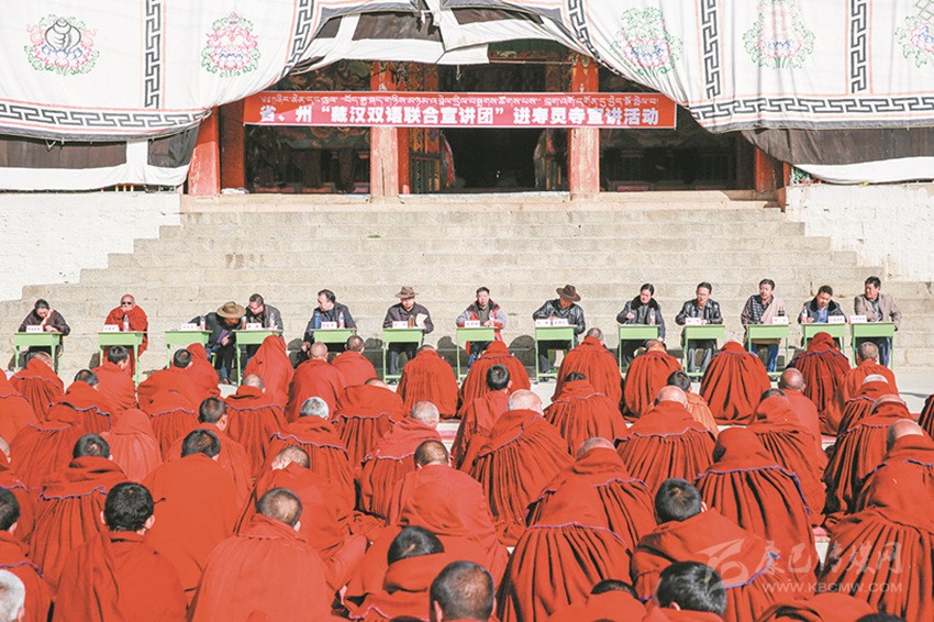在法律進(jìn)寺廟方面,我州持續(xù)深化法律進(jìn)寺廟“四進(jìn)七有”活動(dòng),健全完善寺廟法治宣傳欄、法律圖書角、法律服務(wù)聯(lián)系點(diǎn)、法律明白人管理等工作制度,建成寺廟法治宣傳欄598個(gè)、圖書角504個(gè)、法律服務(wù)聯(lián)系點(diǎn)489個(gè),培訓(xùn)培養(yǎng)寺廟“法律明白人”947人;組織開展《憲法》《刑法》《刑事訴訟法》《國家安全法》《治安管理處罰法》《道路交通安全法》《宗教事務(wù)條例》進(jìn)寺廟專項(xiàng)活動(dòng),全州共開展法律入寺宣傳1900余場次,覆蓋寺廟532座、僧尼8萬余人次。