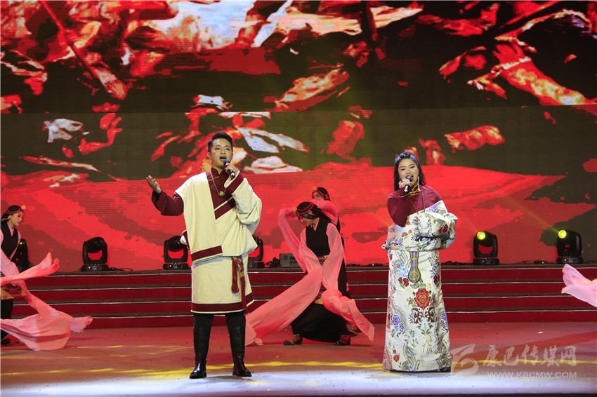 隨后以三個“新”字為主題的篇章,更是彰顯了民族風情、甘孜風格、時代風貌。挖掘民族素材、彰顯民族文化,甘孜歌舞團以格薩爾傳說為“藍本”,推陳出新表演的《格薩爾仲肯》,讓民族文化熠熠生輝;民族文化需傳承,少年強則甘孜強。德格縣中學少兒則噶表演的《吉祥頌》,讓人感到后生可畏,贏得陣陣掌聲;富有激情的朗誦、珠聯(lián)璧合的配樂,《甘孜與祖國相約出發(fā)》讓現(xiàn)場觀眾真切地感受到了盛世中華,真情贊美幸福美好的新生活;歌曲大聯(lián)唱《如歌歲月》通過不同時代的代表性歌曲,唱出了甘孜兒女愛祖國、愛家鄉(xiāng),感黨恩、思奮進的真摯情懷;由州歌舞團和爐霍、丹巴、德格、巴塘等縣藝術團聯(lián)袂上演的《幸福大家庭》,既有漢族歌舞《祝福祖國》、藏族舞蹈《放牧人》、蒙古族舞蹈《送親》、彝族舞蹈《彝家情》、回族舞蹈《花兒》,更是彰顯了民族團結的大主題,為我州創(chuàng)建全國民族團結進步示范州擂鼓助威。