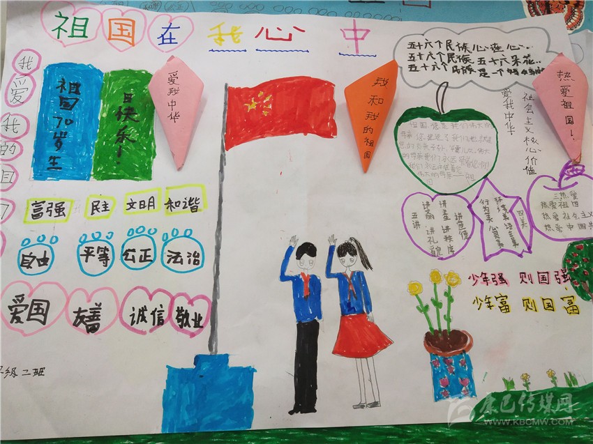 活動(dòng)在該校三至六年級(jí)學(xué)生中開展,老師為學(xué)生提供創(chuàng)作所需材料,讓學(xué)生自由想象發(fā)揮,把自己心中對(duì)祖國的熱愛躍然紙上。各班精心組織,不到兩個(gè)小時(shí)的時(shí)間,一幅幅主題鮮明、內(nèi)容豐富、色彩明快的手抄報(bào)誕生了,孩子們的作品充滿了對(duì)祖國深深的愛與衷心的祝福。何俊鑫 文/圖