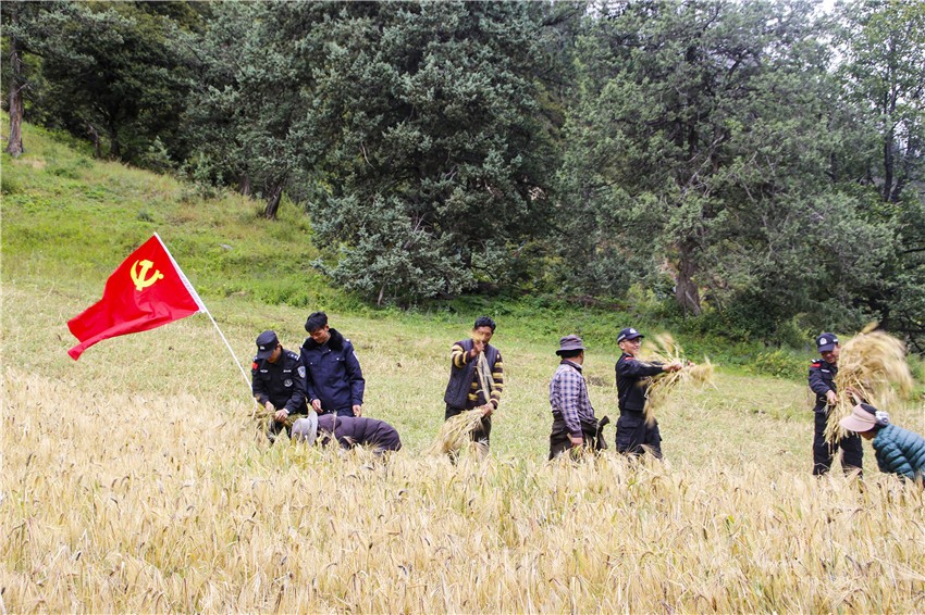 9月初,記者在甘孜縣百里青稞畫廊看到,成片成帶的青稞田宛如一片金色的海洋,風(fēng)吹麥浪翻滾,一層又一層綿延到雪山腳下。收割機“轟隆隆”不停作業(yè),農(nóng)民們正搶抓農(nóng)時收割,一派繁忙景象。