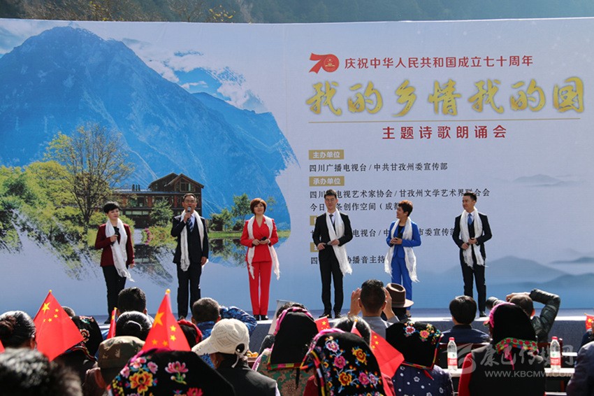本網(wǎng)訊 10月16日,由省廣播電視臺、州委宣傳部聯(lián)合主辦的“我的鄉(xiāng)情我的國”主題詩歌朗誦會在康定市孔玉鄉(xiāng)色龍村圓滿落幕。20多名省內(nèi)知名主持人和朗誦藝術(shù)家齊聚色龍村,以天為幕、地為臺,通過朗誦、演唱、情景表演等藝術(shù)形式歌頌美麗富饒的甘孜,展示甘孜新時代鄉(xiāng)村振興的美好畫卷,講述新中國成立以來發(fā)生在蜀鄉(xiāng)大地上的故事,獻禮中華人民共和國成立70周年。