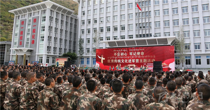 本網(wǎng)訊 11月9日下午,由州委宣傳部、州文化廣播電視和旅游局主辦,州文化館、州委黨史研究室、州圖書館承辦的“不忘初心、牢記使命”優(yōu)秀傳統(tǒng)文化進(jìn)軍營(yíng)主題活動(dòng)走進(jìn)武警甘孜支隊(duì)。州民族歌舞團(tuán)的歌手和演員們齊聚軍營(yíng),為官兵們送上了一場(chǎng)精彩絕倫的文化盛宴。