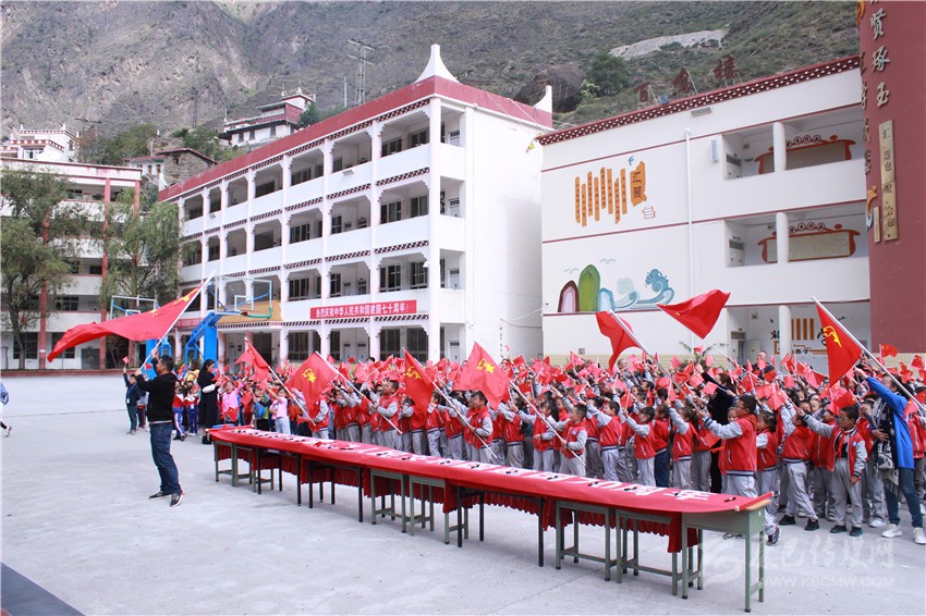 圖為丹巴縣川口寄宿制學(xué)校正在開展愛國主義教育活動。 丹宣 圖