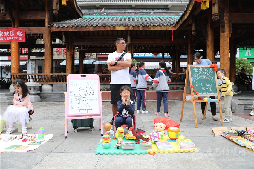 “這個玩具1元錢賣不賣?”“已經(jīng)很便宜啦!最低3元錢?!?月31日,瀘定橋廣場人流涌動、熱鬧非凡,叫賣聲不絕于耳,不少“小顧客”在各個攤位之間,認(rèn)真地挑選自己心儀的商品,有模有樣地討價還價,廣場變成了熱鬧的自由貿(mào)易市場。