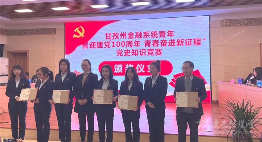 本網(wǎng)訊(陳建軍 江承艷)4月27日,農(nóng)行甘孜分行黨史學(xué)習(xí)青年代表競(jìng)賽小組在2021年甘孜州金融系統(tǒng)青年“喜迎建黨100周年 青春奮進(jìn)新征程”黨史知識(shí)競(jìng)賽中一舉斬獲三等獎(jiǎng)。該知識(shí)競(jìng)賽由人民銀行甘孜州中心支行舉辦,甘孜州金融機(jī)構(gòu)15支代表隊(duì)參加競(jìng)賽,農(nóng)行甘孜分行黨委副書記、專家、副行長(zhǎng)周莉萍及其他金融機(jī)構(gòu)負(fù)責(zé)人出席現(xiàn)場(chǎng)并為所有選手加油鼓勁。競(jìng)賽分為初賽和決賽兩個(gè)部分,初賽采用閉卷考試,決賽為現(xiàn)場(chǎng)搶答、必答等,甘孜分行青年代表隊(duì)以98分初賽筆試成績(jī)殺入決賽。在決賽環(huán)節(jié)中,農(nóng)行青年員工代表積極搶答,沉著應(yīng)戰(zhàn),流利回答,獲得裁判好評(píng)以及現(xiàn)場(chǎng)觀眾雷鳴般的掌聲。經(jīng)過(guò)激烈角逐,農(nóng)行代表隊(duì)取得個(gè)人第四名和團(tuán)體三等獎(jiǎng)的優(yōu)異成績(jī)?;顒?dòng)最后,全體參賽、觀賽人員齊唱《唱支山歌給黨聽(tīng)》,表達(dá)了對(duì)共產(chǎn)黨建黨100周年的深切祝福。