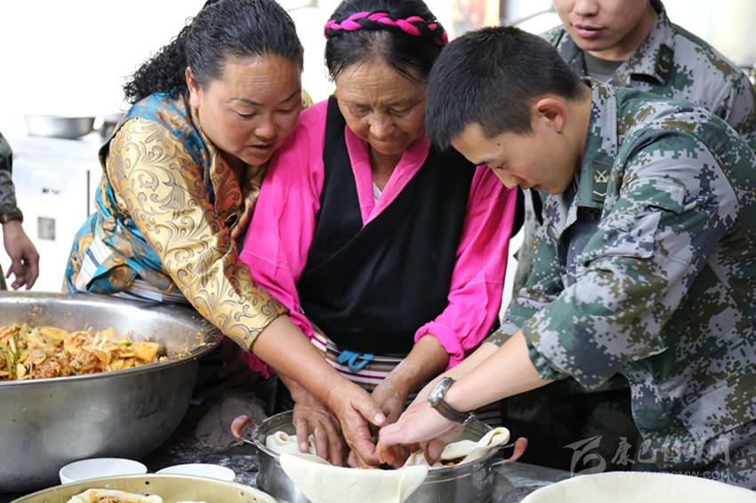 巴塘群眾與部隊官兵共同制作“團結(jié)包子”。