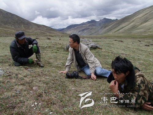 記者現(xiàn)場(chǎng)采訪采挖蟲草的牧民。