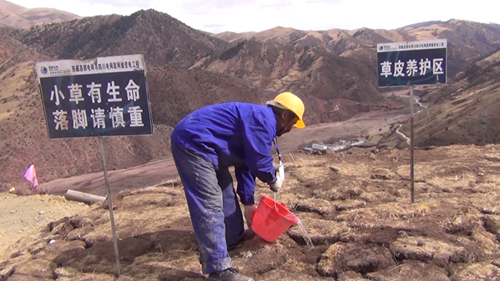 據(jù)介紹,施工前工作人員先將施工區(qū)域的原生草皮進(jìn)行剝離,移至他處并進(jìn)行養(yǎng)護(hù),待施工結(jié)束后,再將剝離的草皮移回原處進(jìn)行回鋪;對(duì)開挖造成地表植被破壞的地段播撒適合高原生長的草籽,直到長出綠草?,F(xiàn)場(chǎng)的施工人員介紹說,塔基開挖過程中,先將熟土(表土)、生土分開堆放,并采取隔離(鋪設(shè)棕墊等)、攔擋、覆蓋等措施,回填時(shí)先將生土回填,熟土最后置于表面,以保證植被的恢復(fù)。