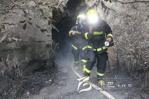 消防官兵在使用有毒氣體探測儀對現(xiàn)場氣體進(jìn)行檢測后發(fā)現(xiàn),雖然煙氣刺鼻,但未檢測出有毒氣體。在使用排煙機(jī)對山洞進(jìn)行持續(xù)排煙后,中隊派出兩名消防官兵佩戴空氣呼吸器和強(qiáng)光燈在水槍的掩護(hù)下進(jìn)入山洞偵查煙氣源。因山洞內(nèi)煙霧大,溫度高,能見度低,第一批消防官兵未能找到煙氣源。在短暫準(zhǔn)備后,第二批消防官兵攜帶相關(guān)器材進(jìn)入山洞繼續(xù)尋找。在距離山洞口十幾米的地方,消防官兵發(fā)現(xiàn)了大量正在燃燒的電纜線,經(jīng)初步確定,大量白煙就是電纜線燃燒后產(chǎn)生的。因山洞長時間受高溫烘烤隨時可能倒塌,消防官兵在與當(dāng)?shù)卣?fù)責(zé)人協(xié)商后對山洞洞口實施了封閉滅火。