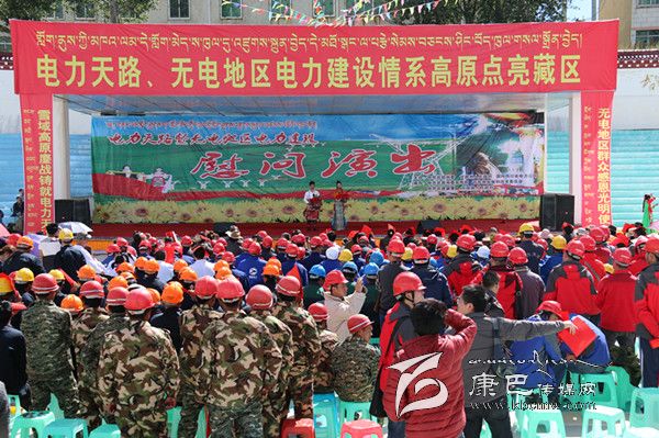 本網(wǎng)訊(見習(xí)記者 陳雪峰 文/圖) 8月29日,由中共甘孜州委、甘孜州人民政府和國(guó)網(wǎng)四川省電力公司主辦,州委宣傳部、州發(fā)改委和中共甘孜縣委、甘孜縣人民政府共同承辦的“電力天路”暨無(wú)電地區(qū)電力建設(shè)慰問演出活動(dòng)在甘孜縣舉行。州政府副州長(zhǎng)張平森和國(guó)網(wǎng)四川省電力公司副總經(jīng)理丁燕生等蒞臨慰問演出現(xiàn)場(chǎng)。