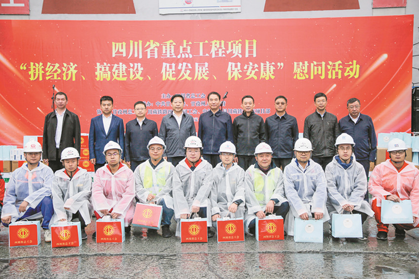省委常委、統(tǒng)戰(zhàn)部長趙俊民(左五),州委書記沈陽(右四)等領(lǐng)導(dǎo)赴甘孜州重點(diǎn)工程項(xiàng)目開展“拼經(jīng)濟(jì)、促發(fā)展、保安康”慰問活動(dòng)。