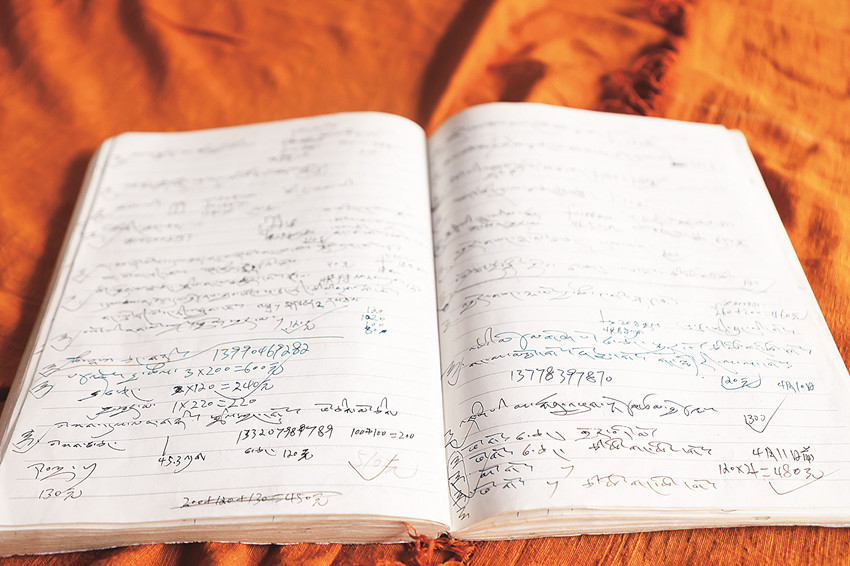 扎西澤仁的筆記本記滿(mǎn)顧客要求、價(jià)格等信息。