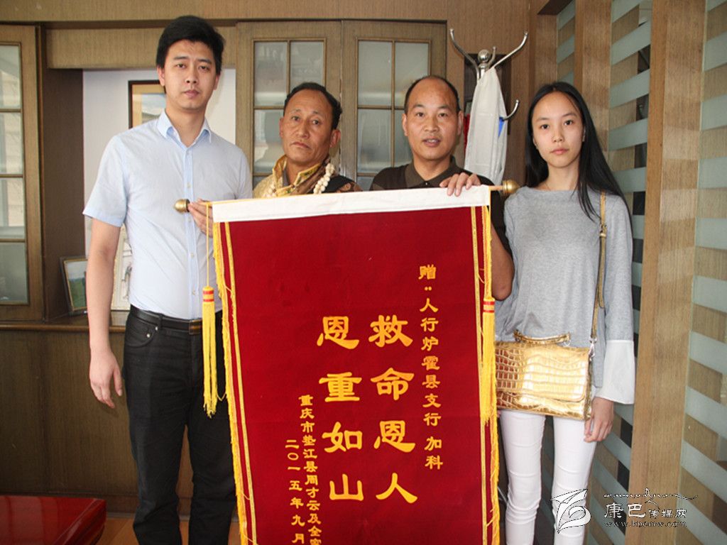9月8日,重慶墊江人周才云攜女兒周瑩、女婿李超,從千里之外專程趕到人行爐霍縣支行向支行領(lǐng)導(dǎo)贈送“救命恩人,恩重如山”錦旗和感謝信。9月10日,爐霍縣委宣傳部在人行爐霍縣支行召開會議,對該行職工加科助人為樂的舉動進行表彰。