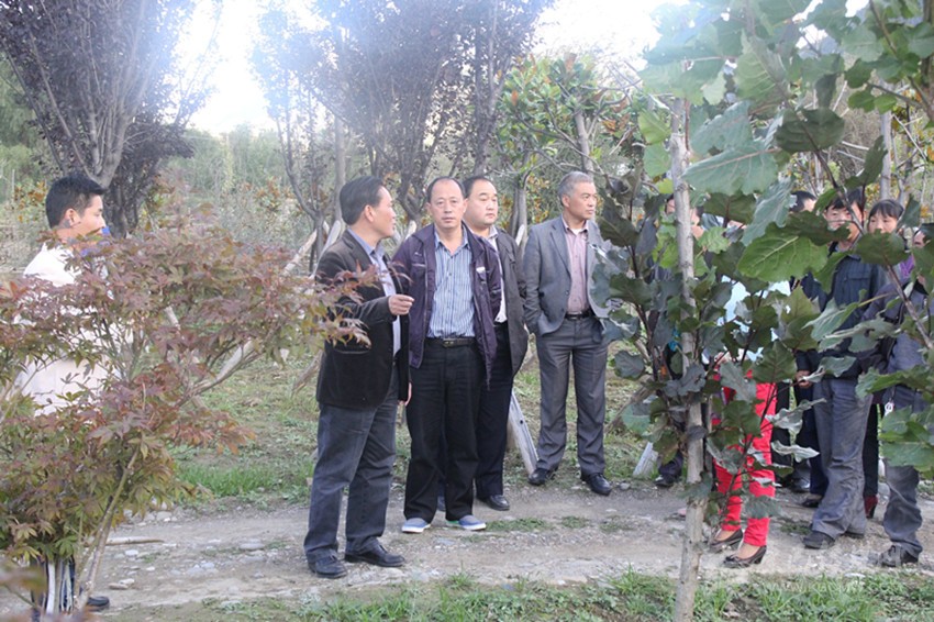 代敬濤和局領(lǐng)導查看苗木長勢情況。
