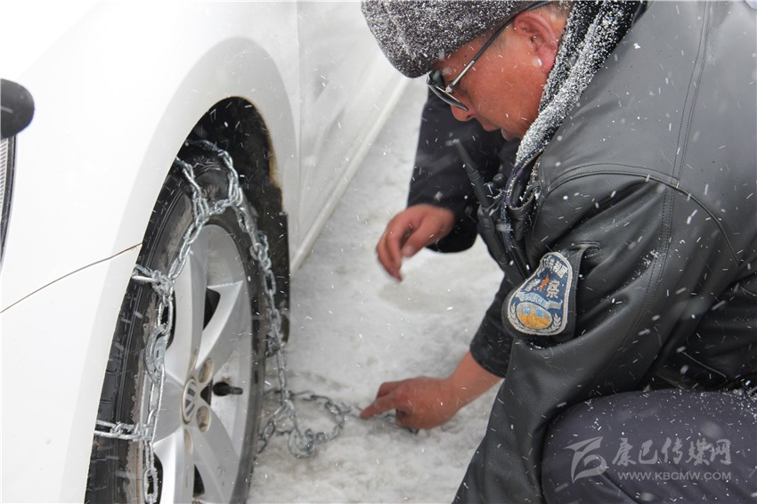 王洛讓在折多山幫助司機掛鏈條。